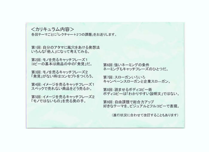 各回テーマごとに「レクチャー+2つの課題」をお送りします。