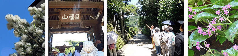 鎌倉駅近くの大功寺でオニユリやムクゲを鑑賞してバスで九品寺へ。のどかな材木座商店街を歩き、海の家が並ぶ