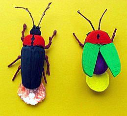 横須賀市環境政策課のイベント用に急きょ作ったホタル2匹。左はリアルホタル。おしりの光は