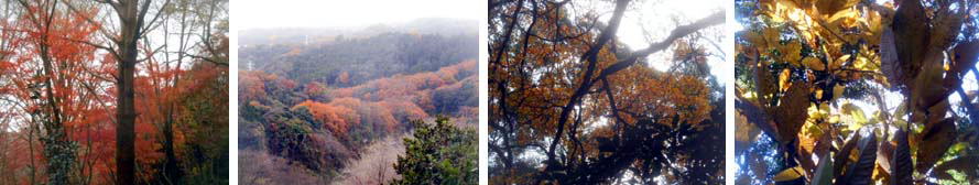 写真: 1イロハモミジ 2、天園からの眺め 3イタヤカエデの紅葉 4.チドリノキの黄葉