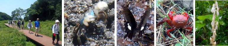 写真1: 参加者の皆様 2 サワガニ 3モンキアゲハ 4アカテガニ 5タシロラン