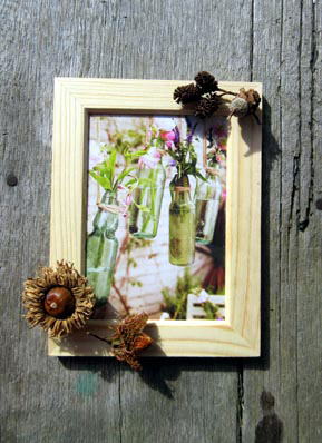 来年の雨の日のプログラム用に木の実で作るフォトフレームの