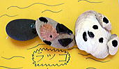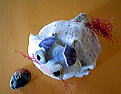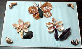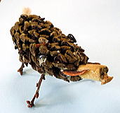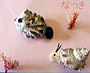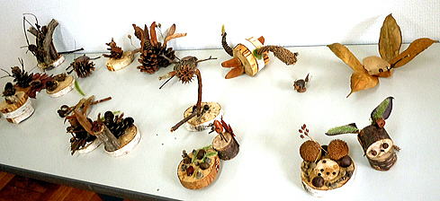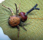 1 :素材は持ち込んだ栗とオニグルミ 2:こぶ枝で作った黒いモスラ! 3:ゴキブリ、じゃなくオサムシ?