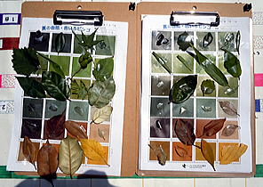 微妙に色の違ういろんな葉を集めました。枯葉色も含めて24色あるので全員がビンゴ!とはいきませんでしたが、