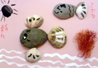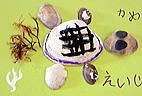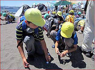 午後はビーチクラフト。砂浜できれいな貝や石をd探してオリジナル作品作りにチャレンジ!去年より割れてる貝が多かったのは