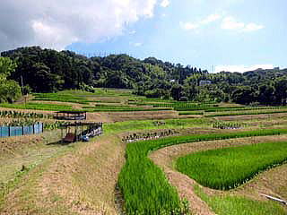 動植物を観察しました。 右が、通称千枚田といわれる、棚田です。三浦半島でもおそらく、