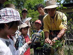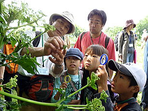 市内の小学校の3年生を対象に島の植物や昆虫の観察を指導。
